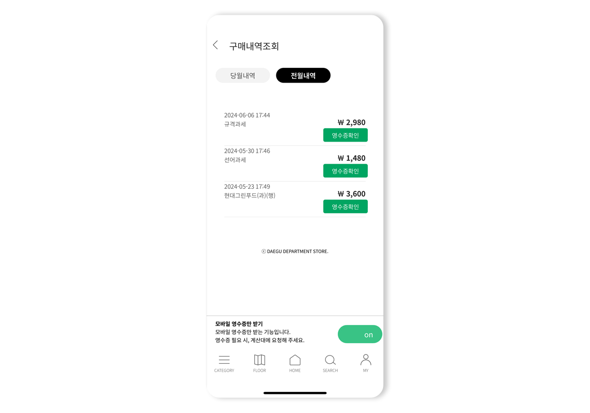 터치한번으로 전자영수증을 확인하세요!