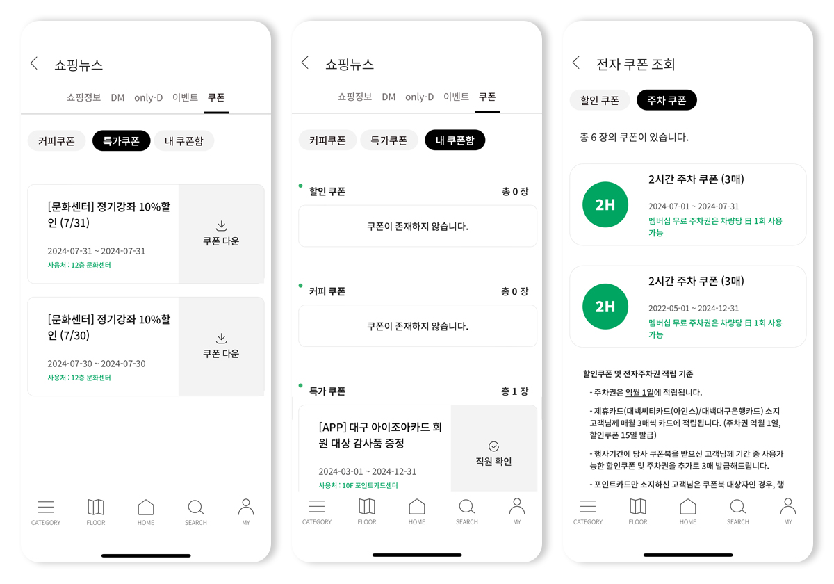 나의 대백쿠폰(주차/할인/이벤트)을 바로 확인하세요!