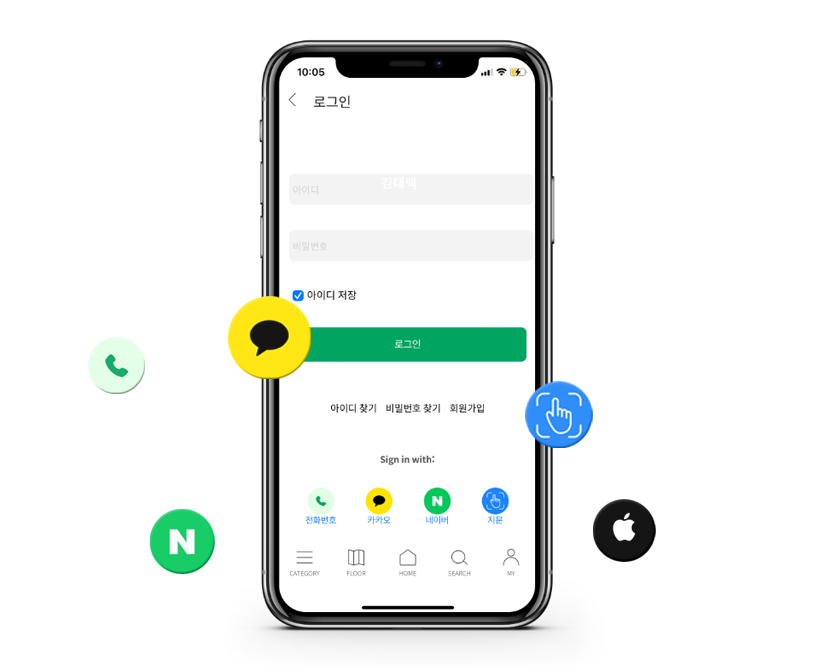 전화번호 / 네이버 / 카카오톡 / 애플 / 지문
